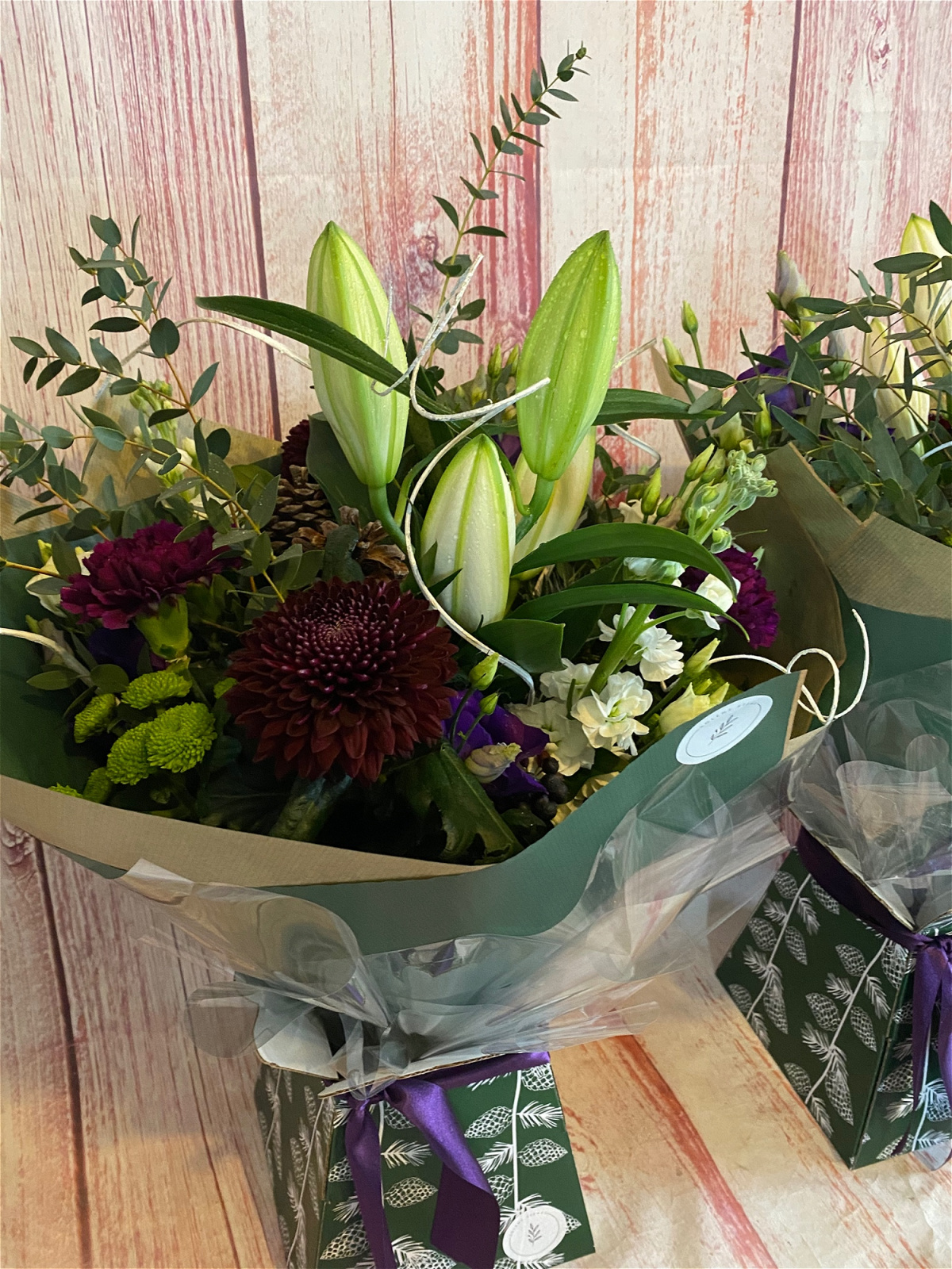 Each of our bouquets are hand made to order, therefore each is truly unique. The pictures show an example of the bouquet you would expect to receive.