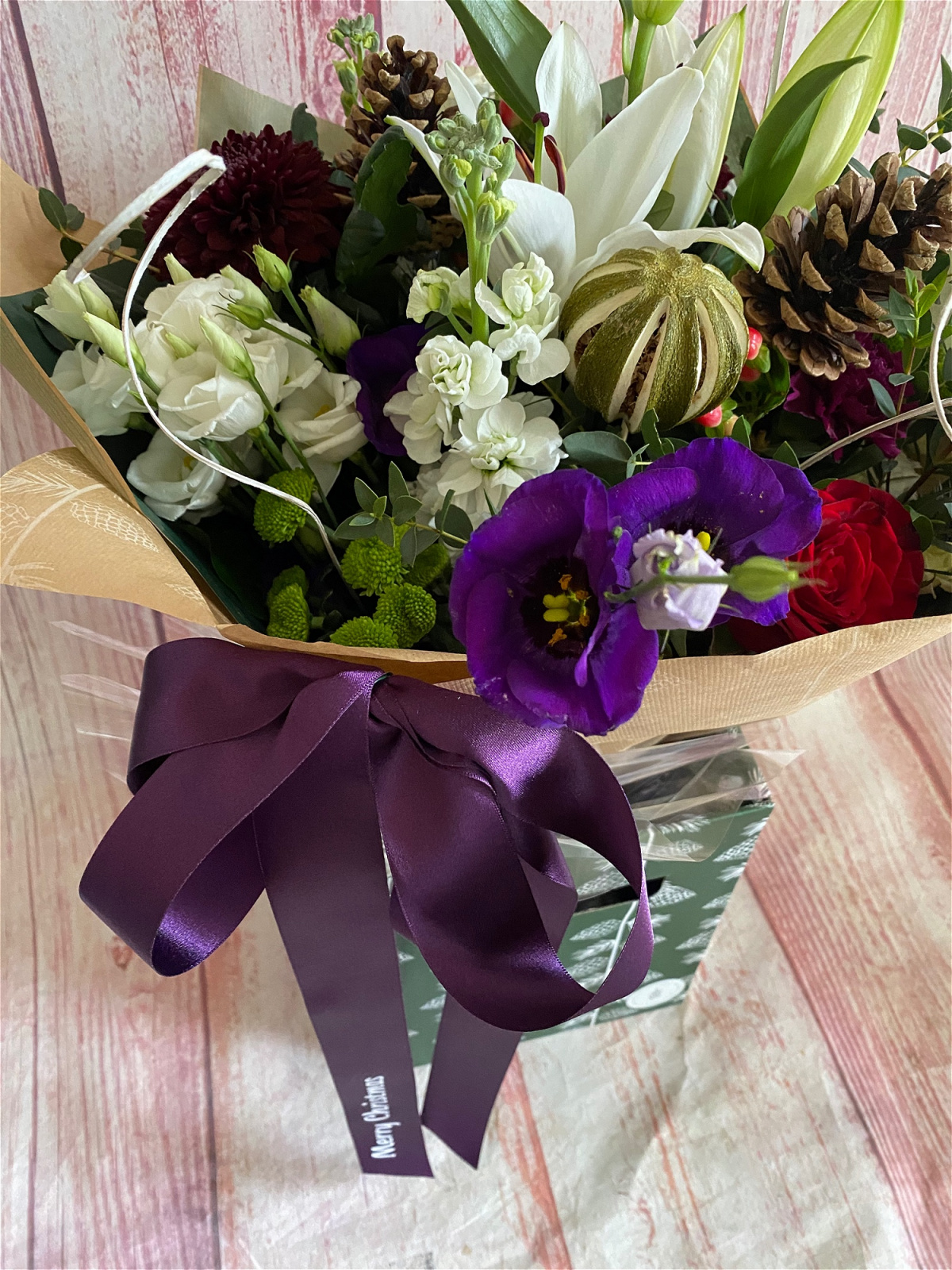 Send festive joy with a beautiful bouquet of luxury hand-tied flowers.