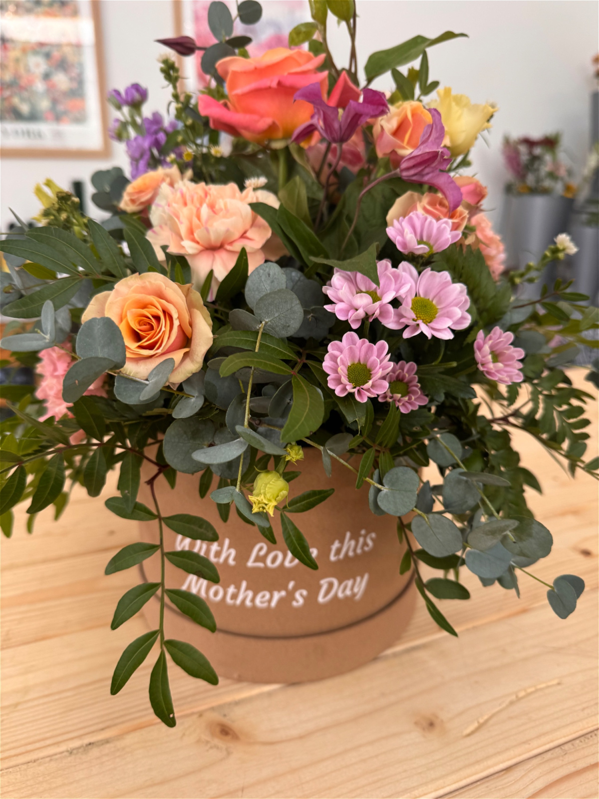 Mother's Day - A stylish hatbox with delicate flowers and seasonal foliage’s is nothing short of impressive as the perfect gift for Mum!