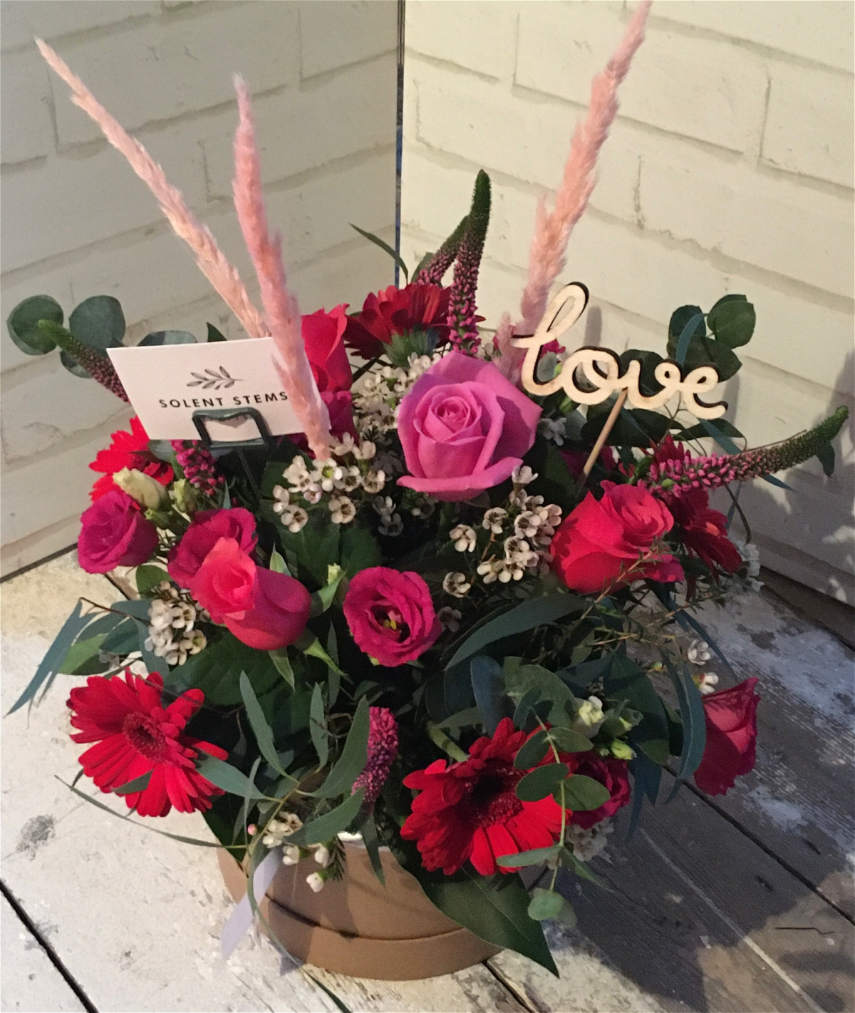 Love Actually - A stylish hatbox with romantic flowers and seasonal foliage’s is nothing short of impressive as the perfect valentines gift!